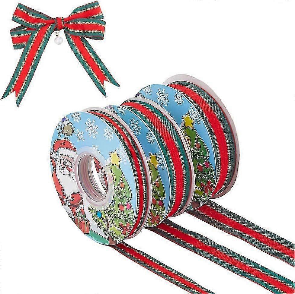 3 Rolls 0.5/0.8/1 inch Christmas Ribbon Wired 75 Yards Red Christmas Tree Ribbon Polyester Striped Ribbon Decorative Ribbon for DIY Gift Wrapping Wrea