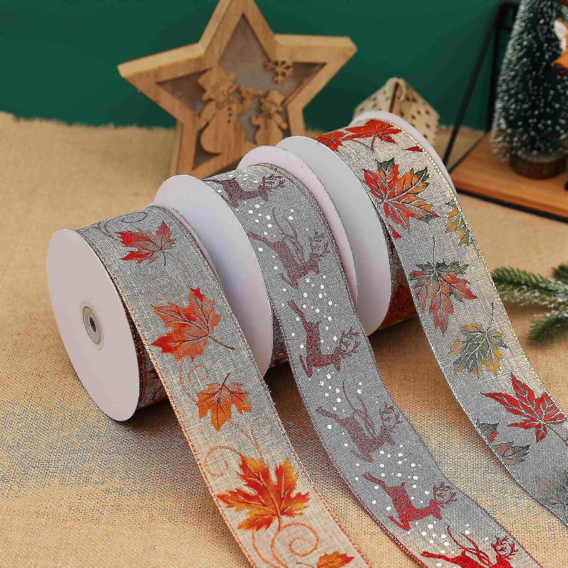 3 Rolls 22m Christmas Wired Edge Ribbon Vintage Truck Ribbon Christmas Tree Craft Ribbon