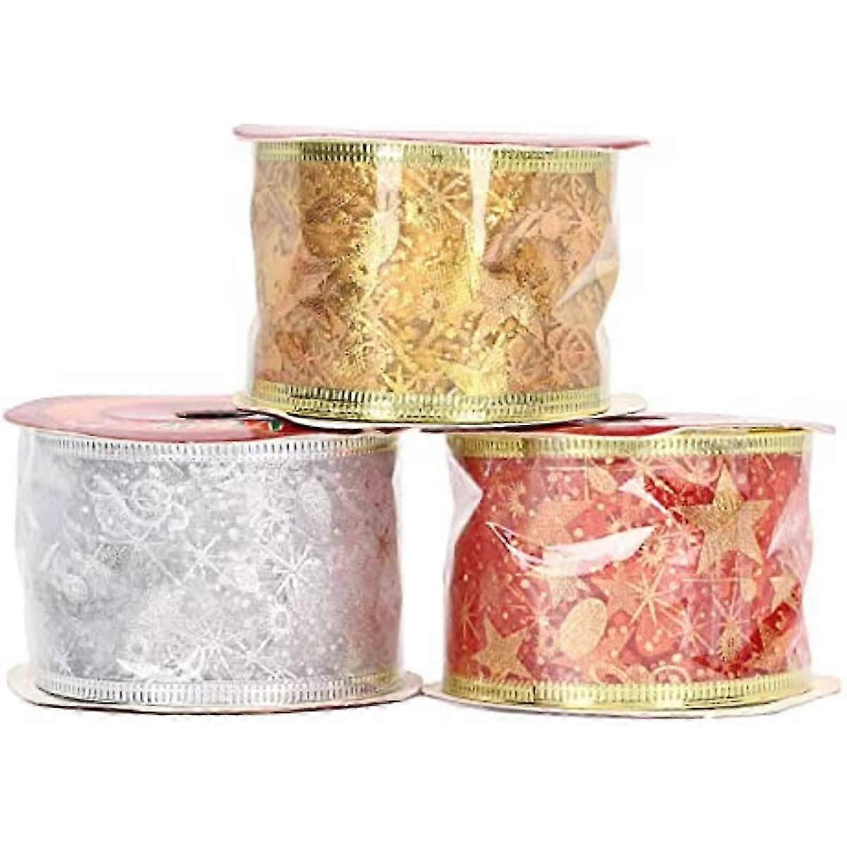 3 Rolls Christmas Ribbon 10 Yards Transparent Metallic Shiny Ribbon for Christmas Decoration Gift Packaging