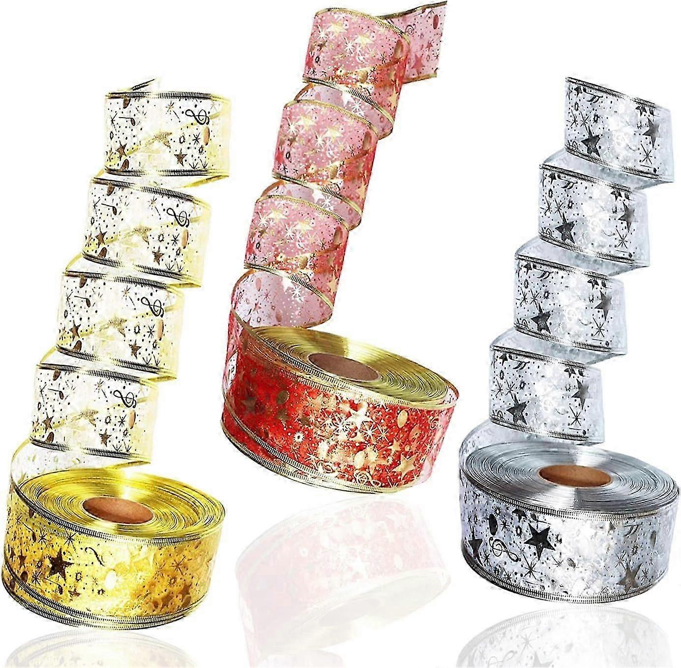 3 Rolls Christmas Ribbons, (2m*3rolls) Star Christmas Decoration Ribbon, Organza Christmas Ribbon Decoration Christmas Ribbon, Craft Fabric Ribbon for