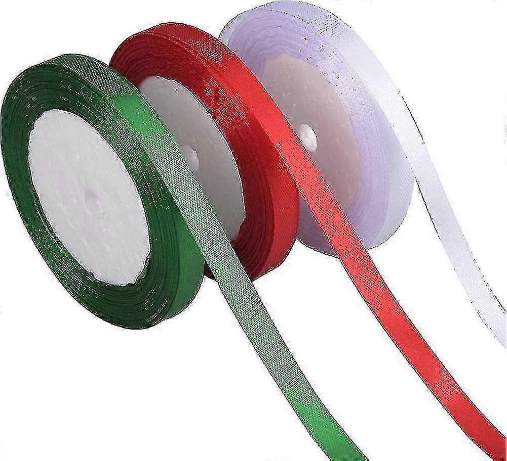 3 Rolls Christmas Satin Ribbon Red Green White Satin Fabric Ribbon Christmas/YY