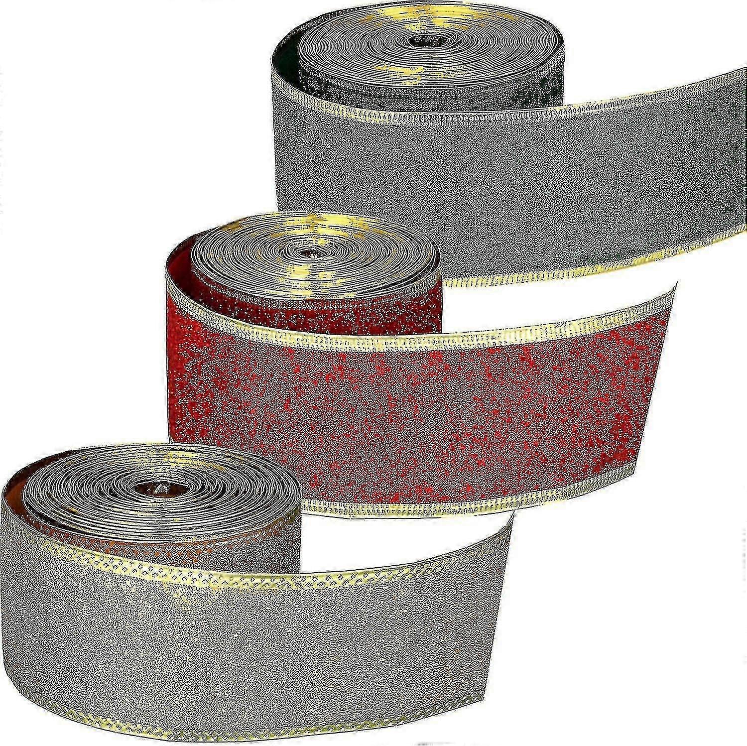 3 Rolls Heilwiy Christmas Ribbon 2 Inch Shimmer Ribbons Glitter Gift Wrapping Ribbons With Wired Edge For Diy Craft