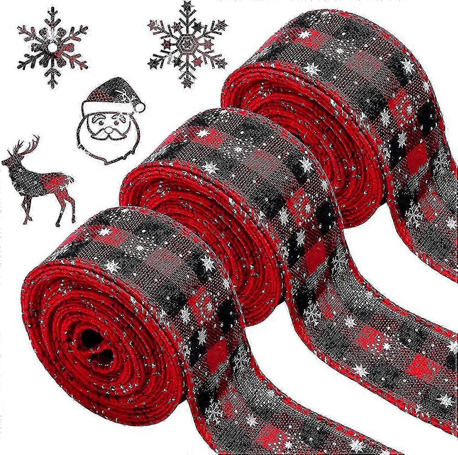 3 Rolls Of Checkered Red And Black Burlap Christmas Ribbon For Gifts