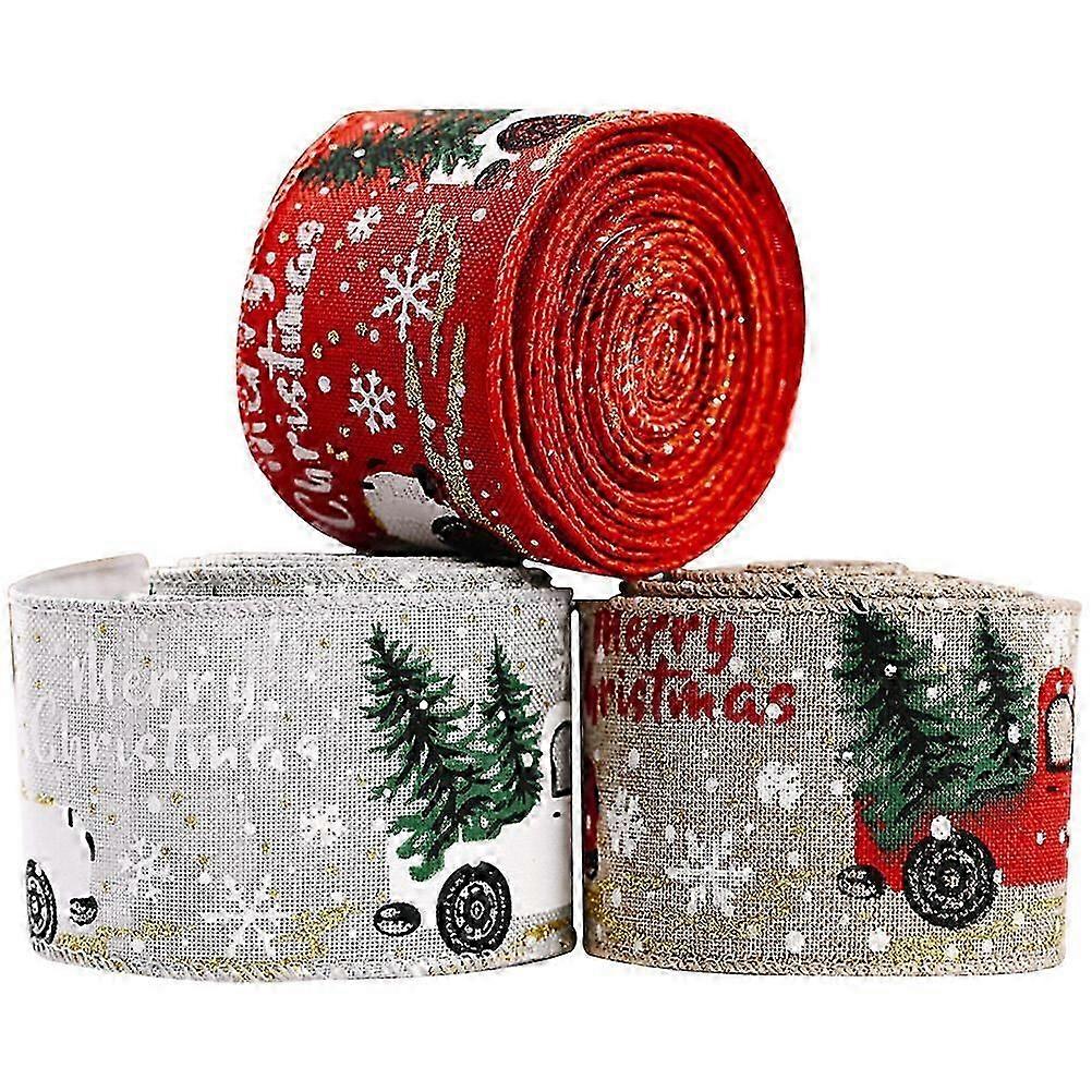 3 rolls of Christmas Ribbon Xmas Tree Decorative Ribbon DIY Bowknot Ribbon Gift Box Ribbon