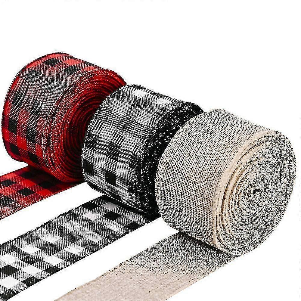 3 Rolls Plaid Ribbon, Christmas Burlap Ribbon, Plaid Burlap Ribbon, 5 * 600cm Retro Burlap Christmas