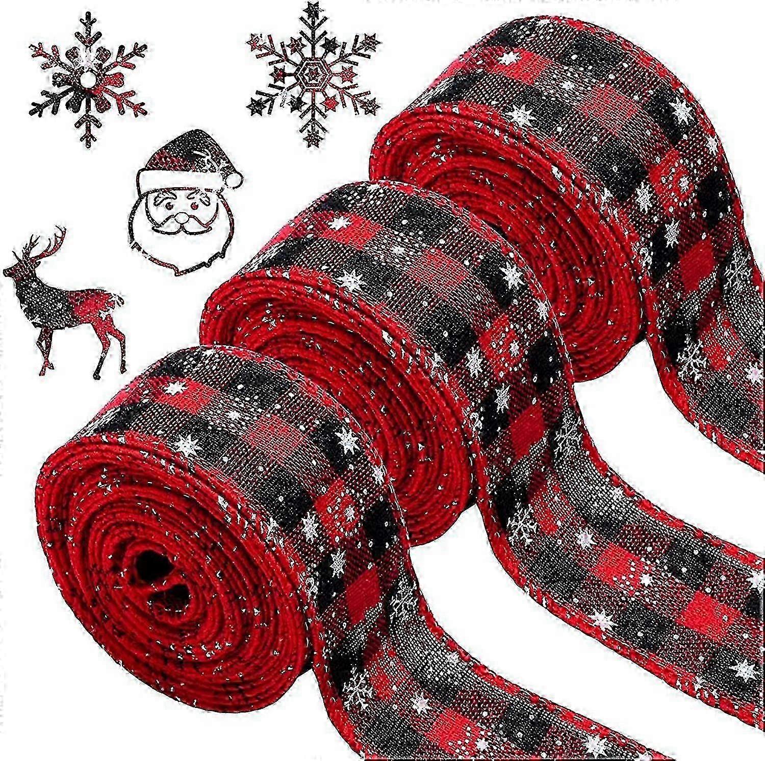 3 Rolls Red and Black Checkered Burlap Ribbon for Christmas Gift Packaging