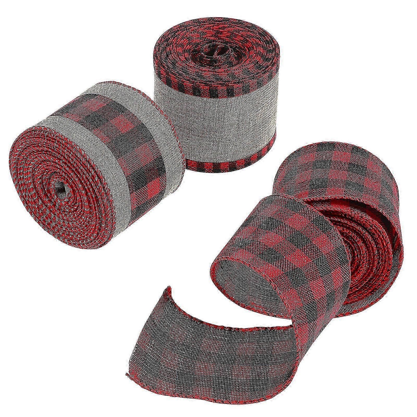 3 Rolls Rustic Burlap Ribbon Yards Buffalo Plaid Christmas Craft Ribbon for Bows, Gift Wrapping, Garland, Wreath & Tree Decorations Sturdy & Easy