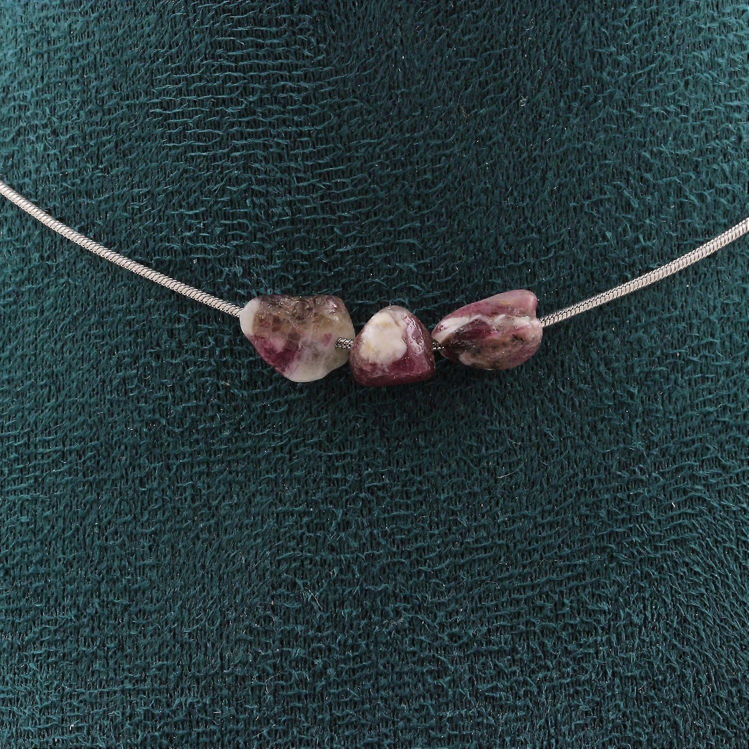 3 Tourmaline Rubellite pearl necklace from Brazil Stainless steel chain