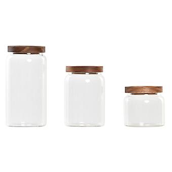 3 Tubs DKD Home Decor Acacia Borosilicate Glass (1 L) (400 ml) (700 ml) (3 Pieces)
