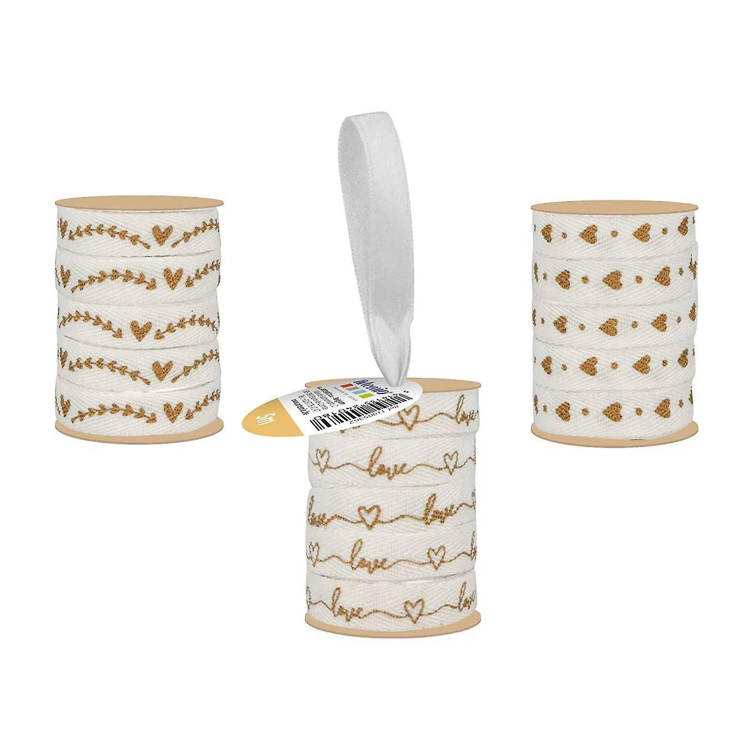3 white and golden ribbons 1 cm x 5 m - love & nature
