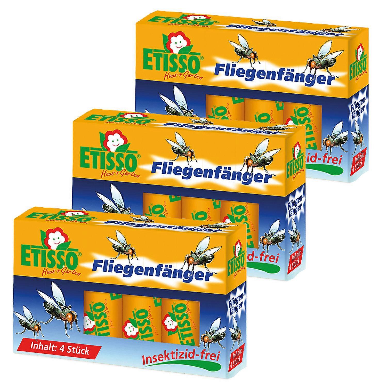 Produktbeschreibung:ETISSO® Fliegenfänger sind mit nicht trocknendem Klebstoff beschichtete Streifen, die sich zusammengerollt in einer Hülse befinden. Durch natürliche Lockstoffe in der Klebeschicht werden die Fliegen angelockt und kleben am Streifen fest.Anwendung: für: Anwendung im Haus, für alle Räumegegen: Fliegen und anderes, fliegendes UngezieferEigenschaften:4 Stück Packung hohe Lockwirkung und starke Klebekraft sicherer Fangerfolgt vollständig ohne Insektizid Anwendung in allen Räumen möglichGebrauchsanweisung:ETISSO® Fliegenfänger werden unter leichter Drehung aus der Schutzhülse gezogen und die Hülse am Klebestreifen belassen. Anschließend wird der Klebestreifen an der Raumdecke oder in Deckennähe befestigt. Dazu kann der beigefügte Reißbrettstift verwendet werden. Die Anzahl der Klebestreifen richtet sich nach Raumgröße und nach Raumverhältnissen. Zur Orientierung dient eine Grundfläche von 10 m² pro Fliegenfänger. Vor der Anwendung die Fliegenfänger einige Stunden bei Zimmertemperatur lagernAnwendungszeitraum: ganzjährig Wirkstoffe/Inhaltsstoffe: keineWirkstoffe / Inhaltsstoffe: Nicht trocknender KlebstoffPackungsgröße: 4 StückAnwendung durch nichtberufliche Anwender zulässig.Diese Produktinformationen ersetzen nicht die Beachtung der Gebrauchsanweisung und erheben keinen Anspruch auf Vollständigkeit.Biozide vorsichtig verwenden. Vor Gebrauch stets Kennzeichnung und Produktinformation lesen
