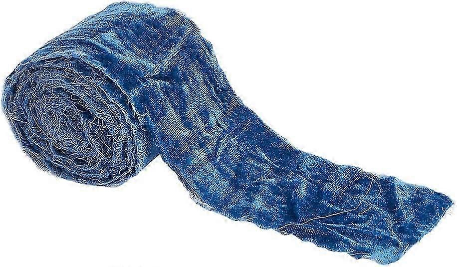 3 Yards Long Christmas Velvet Ribbon Bridal Bouquet Ribbon 3.95" Wide Fringe Ribbon Roll Edge Frayed Ribbon for Gift Wrapping Wedding Decor Deep Blue