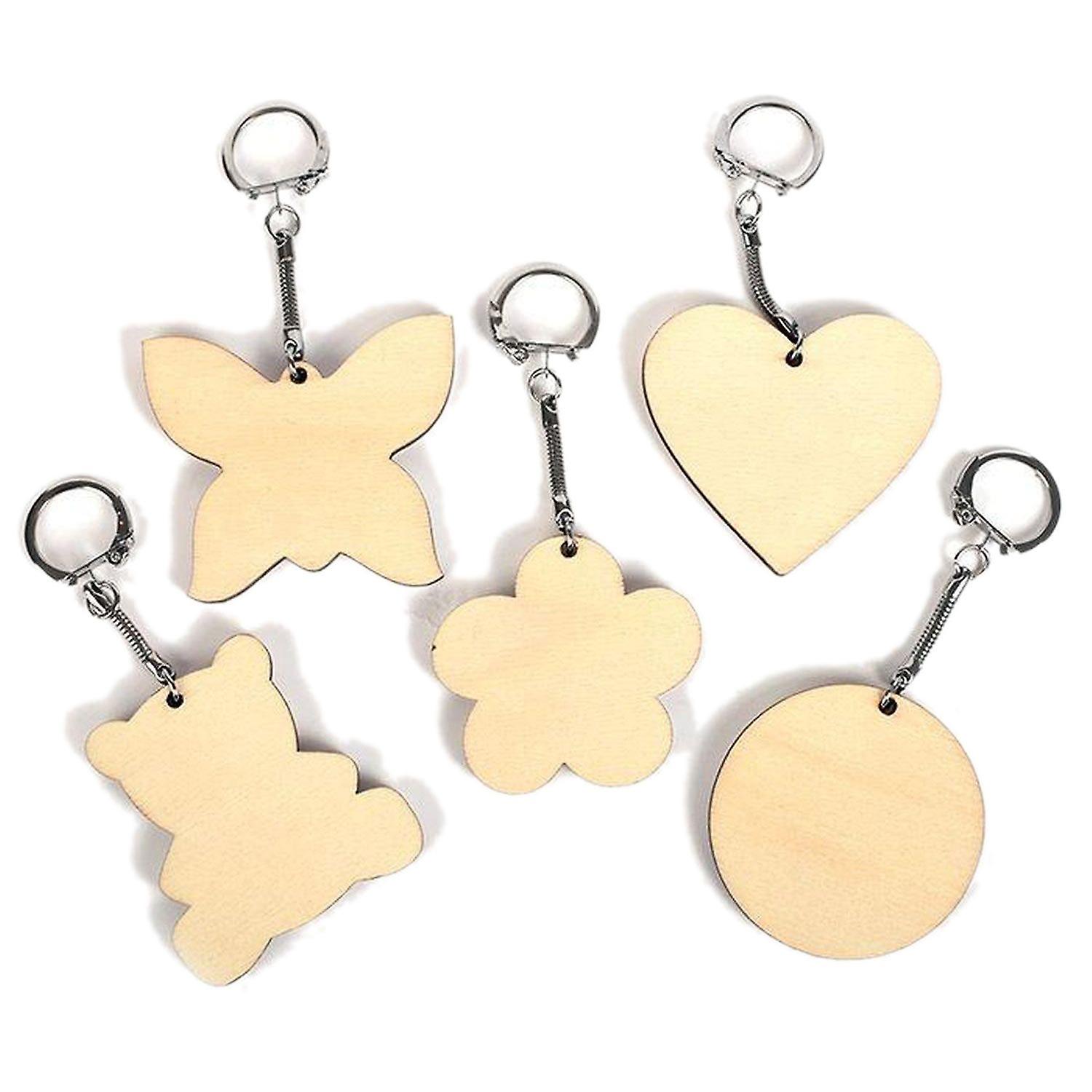 30 assorted wooden key rings 5.5 x 5.5 cm