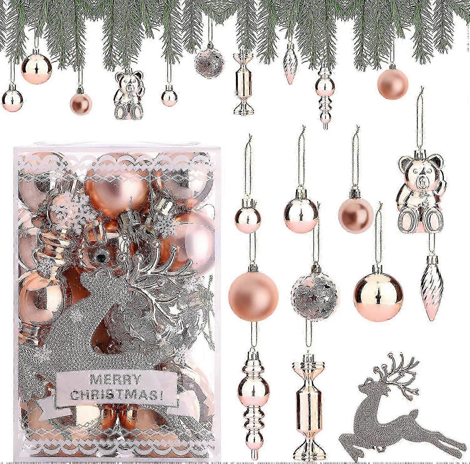 30 Pcs Christmas Baubles Rose Gold Christmas Ball Ornaments Shatterproof Christmas Balls 3cm 4cm 6cm Christmas Tree Decorations Baubles Christmas Hang