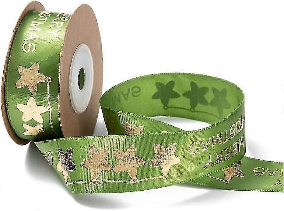 30 Yards 1 Inch Green Gold Christmas Ribbon Star Pattern Print Ribbon Wired Polyester Santa Satin Ribbons with Spool for Sewing Making Crafts Gift Wra