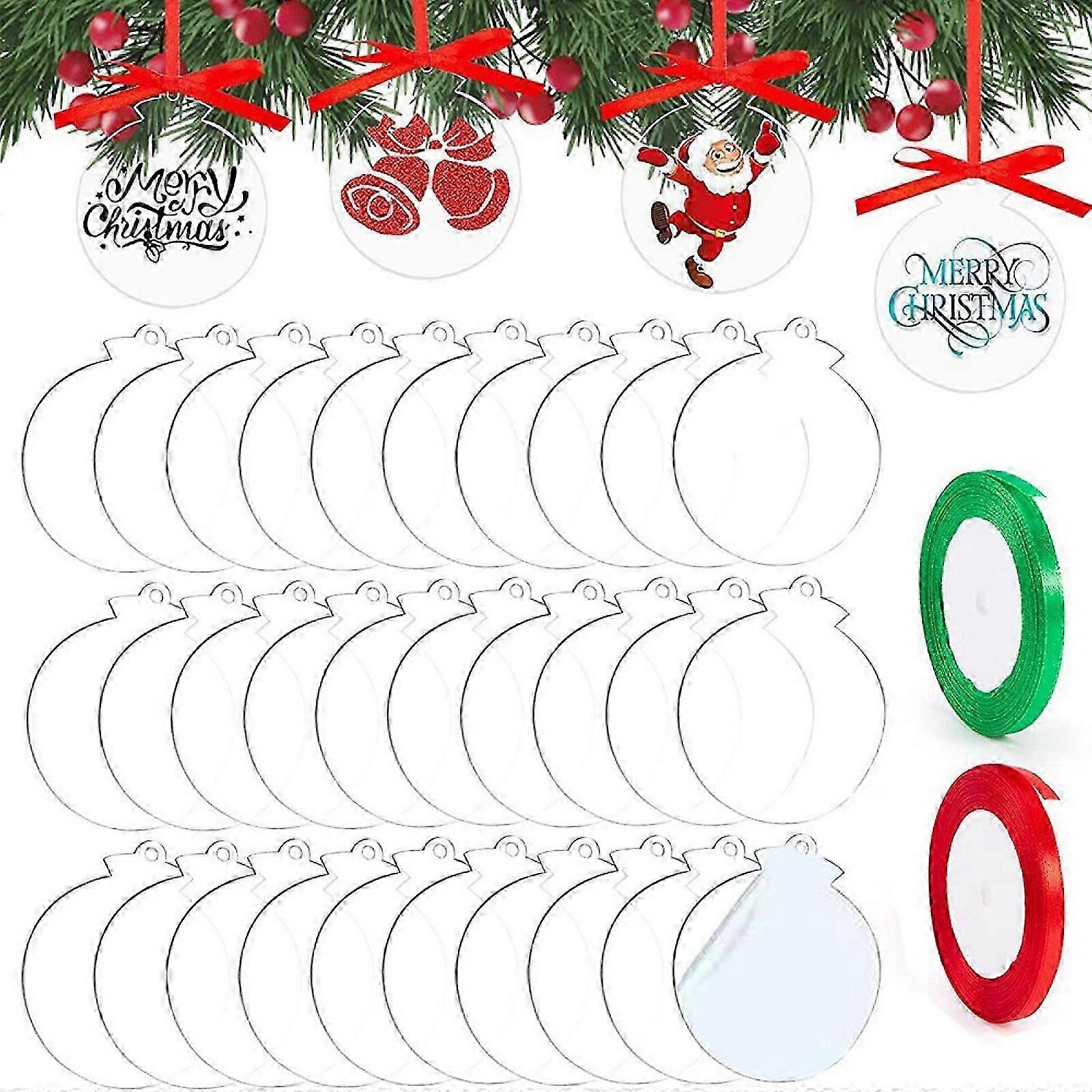 30Pcs Clear Round Acrylic Christmas Baubles DIY Craft Decoration Round Blanks Slices Discs Holiday Dcor Tags Stocking