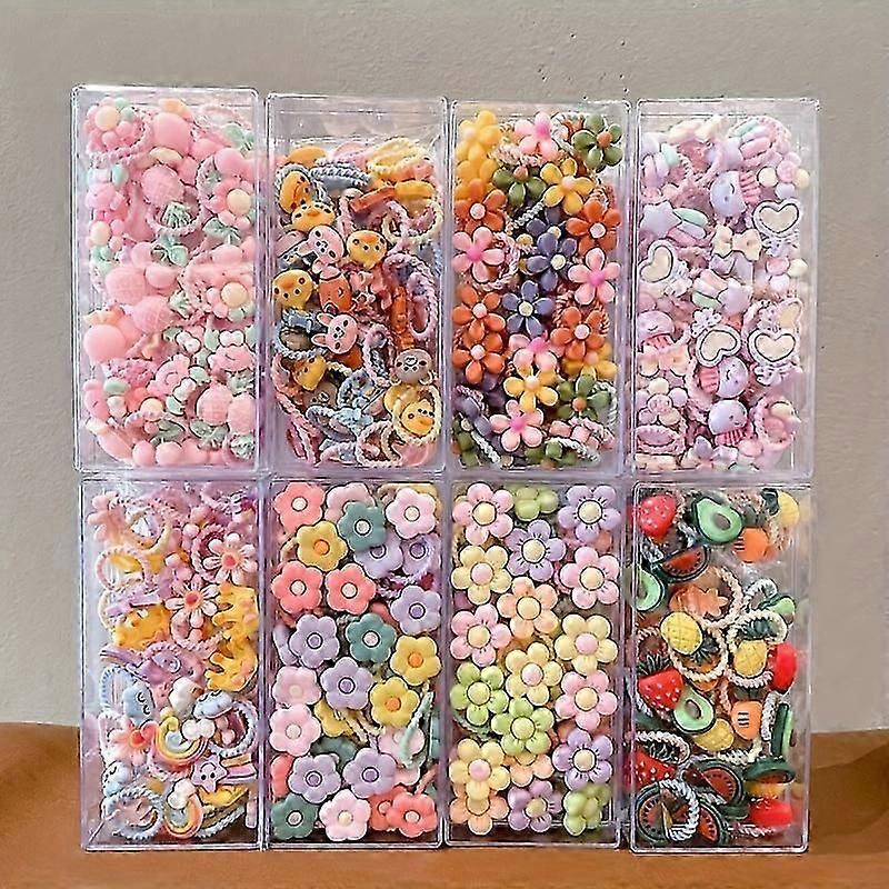 30pcs Girls High Elastic Hair Band Does Not Hurt Hair, Cartoon Animals Flowers And Fruits Decorative Hair