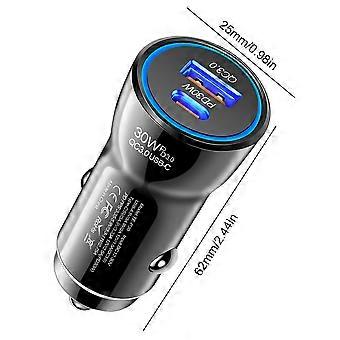 30W QC 3.0 USB/Type-C Rechargeable Car Charger 12-30V Super Fast USB Adapter for iPhone Vivo Samsung