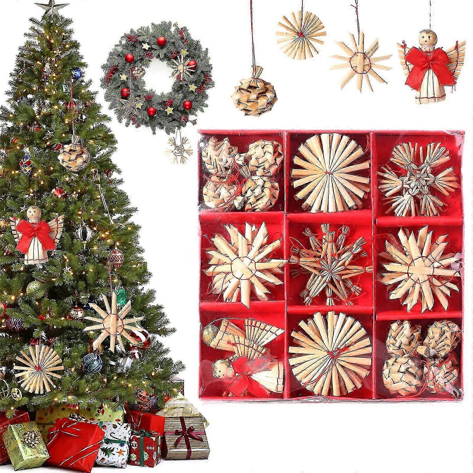 32 Pieces Straw Star Christmas Tree Decoration Mix Set, Straw Star Pendant Christmas, Straw Star Tree Decoration, Natural Christmas Tree Topper Straw
