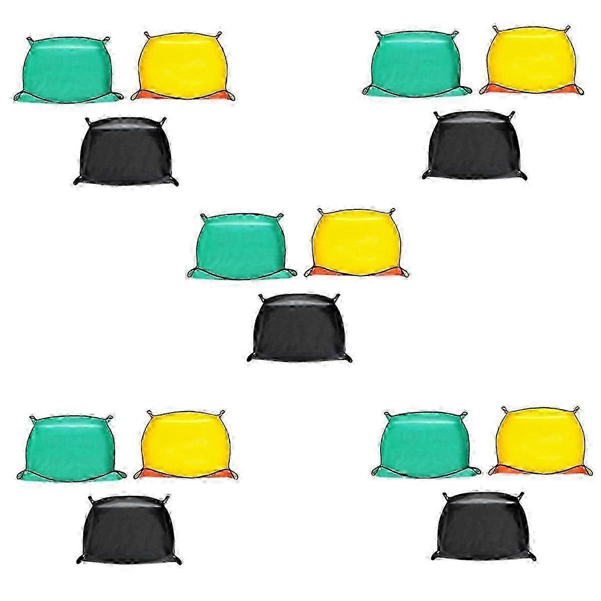 [Exquisite Craftsmanship]The portable gardening mat is designed with high-quality Oxford cloth and waterproof coating, which is wear-resistant and waterproof, and protects the home floor well, effectively prevents soil and moisture from penetrating the floor, and keeps it clean and hygienic[Waterproof and Stain Resistant]Our waterproof and leak-proof potting tarps are well waterproof and stain-proof, easy to clean and maintain, and have a long service lifeFlower pots need to be watered frequently, and flower pot mats can effectively prevent water from seeping into the floor and keep them tidy and hygienic[Fixed Design]Each corner has anti-rust metal buttons, which when buckled together, allow the four corners to easily pass through the buckles to form a short wall, ensuring the stability and safety of the pot, avoiding tilting and movement, and protectingagainst water and soil Prevent leaks and keep floors or tables clean when growing indoors.[Easy to Use]The foldable transplanting work cloth will not let the soil slide out, and can effectively fix the soil of potted plants, keeping the home environment clean and hygienic. The bonsai plant transplanting succulent tool has reinforcement material around it to hold the soil in place and prevent it from spilling, keeping your home clean and hygienic. It also protects plant from damage and external interference, allowing plants to grow healthier.Colour:green+yellow+blackMaterial:plasticSize:32x32x3cmPackage Contents:5 x Green gardening mats5 x yellow thickened gardening mats5 x black gardening matsOnly the above package content, other products are not included.Note: Light reflection and different displays may cause the color of the item in the picture a little different from the real thing. The measurement allowed error is +/- 1-3cm.