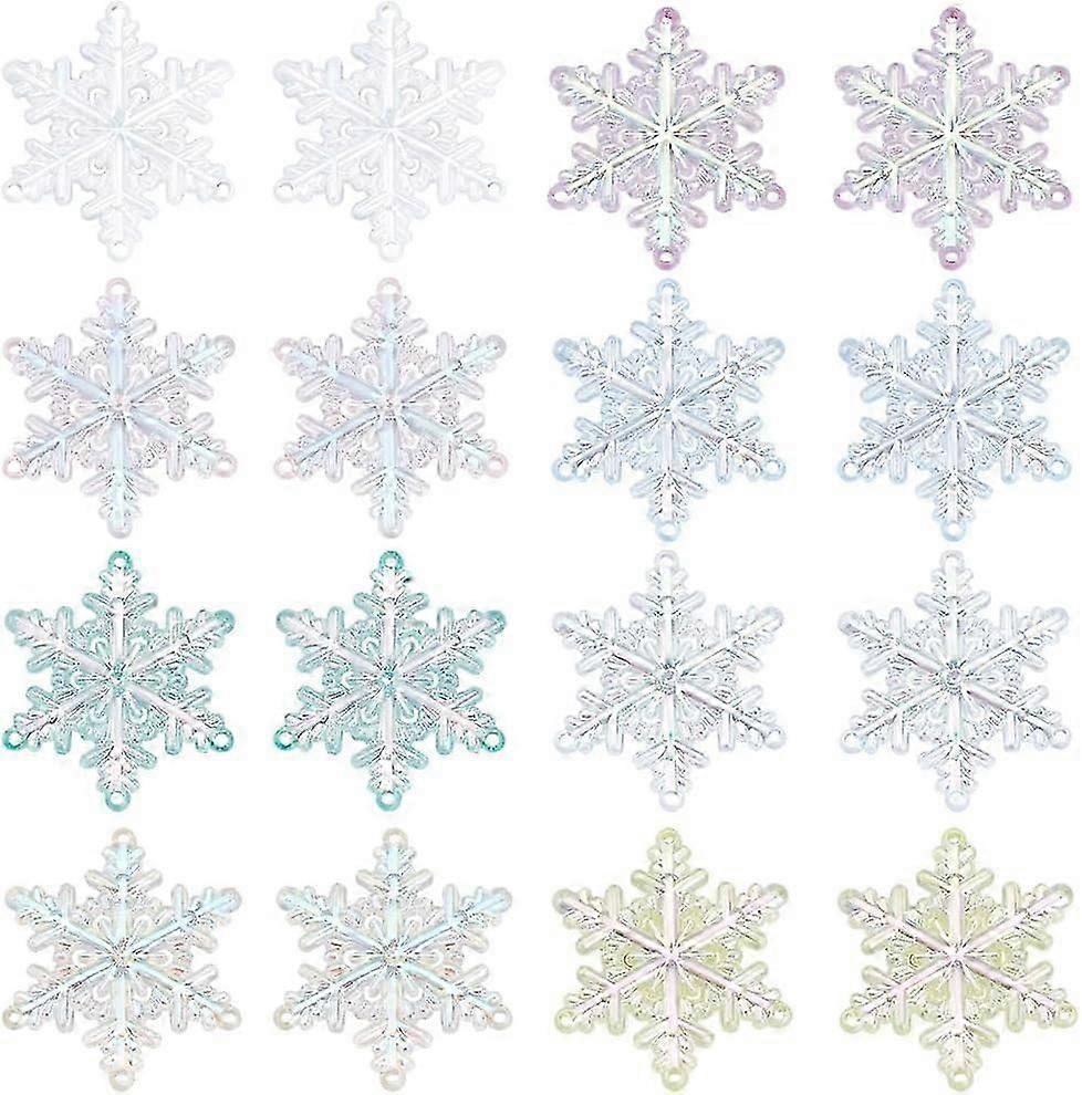 32Pcs 8 Colors Christmas Snowflake Ornament Crystal Xmas Ornaments Plastic Acrylic Winter Holiday Chandelier Component Links Clear Hanging Decoration