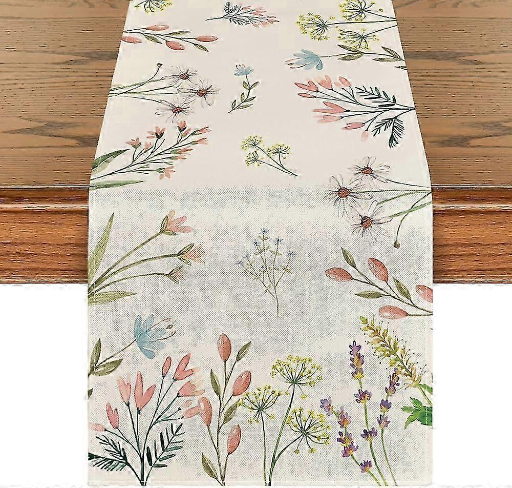 33x183cm, Floral Leaves Spring Table Runner, Seasonal Flowers Summer Kitchen Dining Table Decoration for Home Party