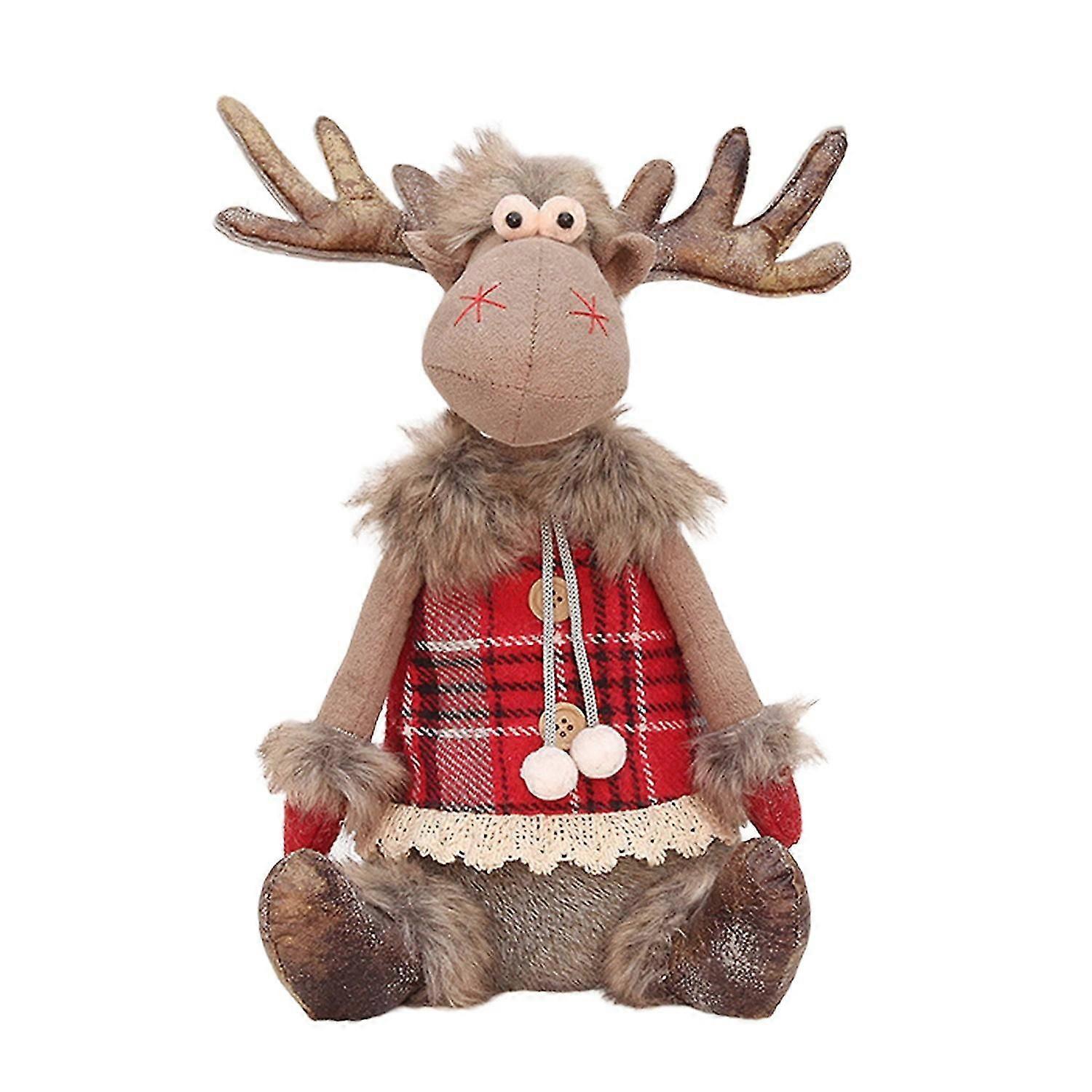 35CM Christmas Elk Doll Adorable Handmade Red Plaid Sitting Standing Holiday Decoration Desktop Plus