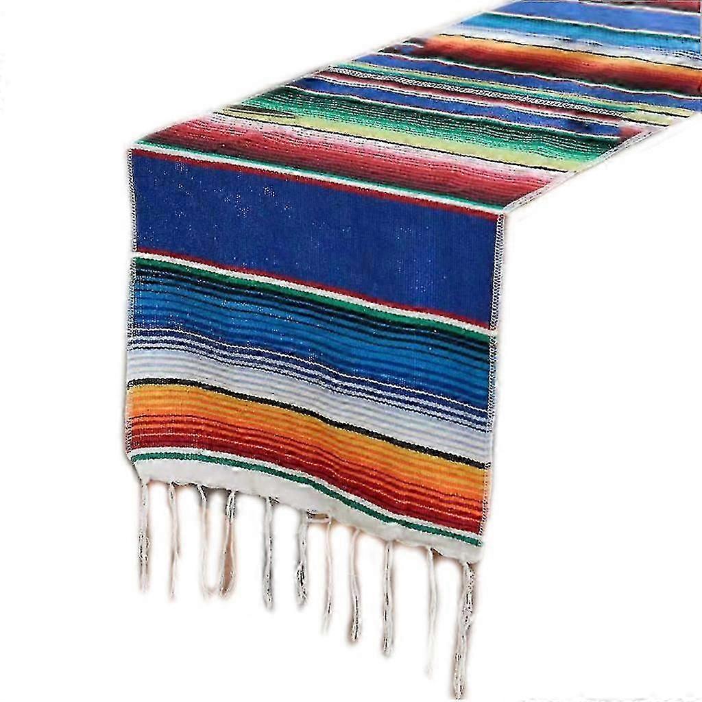 Description: Features:brand new and high qualityMade of high quality durable cotton, easy to clean, stain resistant. It is sewn on all four sides, not easily loose thread.Handwoven with bright rainbow stripes pattern, fringe tassels decoration, 7 colors optional, long rectangle style.Suitable for mexican themed party, birthday, wedding, holiday celebration, thanksgiving, halloween, christmas, and tribal party.Multi-function: suitable for table cloth, picnic rugs, blanket, wall decoration, coffee table and just anything you must cover. Specification:Material: CottonSize: approx. 35x213cm(13.78x83.86in)Color: Royal Blue, Red, Purple, Orange, Rose Red, Green, Lake BlueQuantity: 1 pc Note:Transition: 1cm=10mm=0.39inchNo retail package.Please allow 1-3mm error due to manual measurement. pls make sure you do not mind before you bid.Due to the difference between different monitors, the picture may not reflect the actual color of the item. Thank you Package includes:1 x Table Runner(other accessories demo in the picture is not included.)