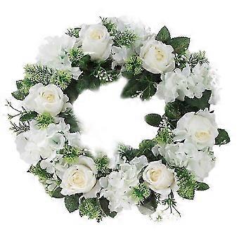 36-40CM White Rose Wreath for Outdoor Wedding and Holiday Decor