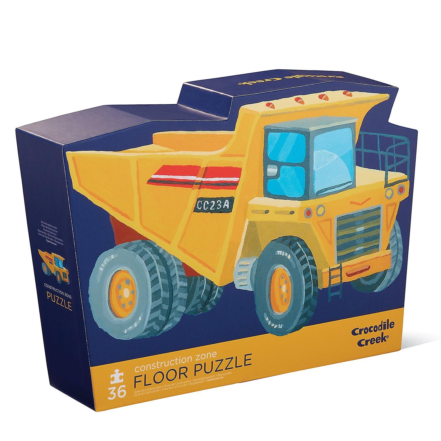 The littlest aspiring builders will love piecing together the trucks, diggers and cranes in this construction themed 36-piece floor puzzle. All wrapped up in its unique contour-shaped storage box, the jumbo, sturdy pieces of this high-quality puzzle are ideal for little hands. Puzzle and box greyboard are made of up to 70% recycled post-consumer content. 36 jumbo puzzle pieces perfectly sized for little handsBeautifully illustrated construction designIdeal for giftingEncourages hand-eye coordination, fine motor skills, problem solving and confidence buildingCompleted puzzle is 68cm W x 50cm H, box is approx 26cm W x 28cm H x 8cm DSuitable for ages 3+Crocodile Creek products conform to all of the appropriate safety standards.