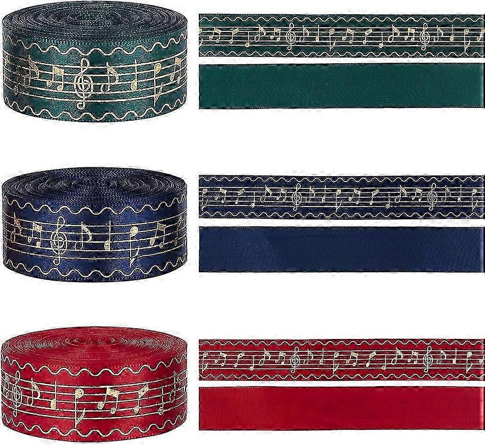 36 Yards Satin Music Ribbon 1 Inch Notation Craft Ribbons Music Note Grosgrain Ribbon Single Face Christmas Ribbon Hot Stamping Ribbon for Party Weddi