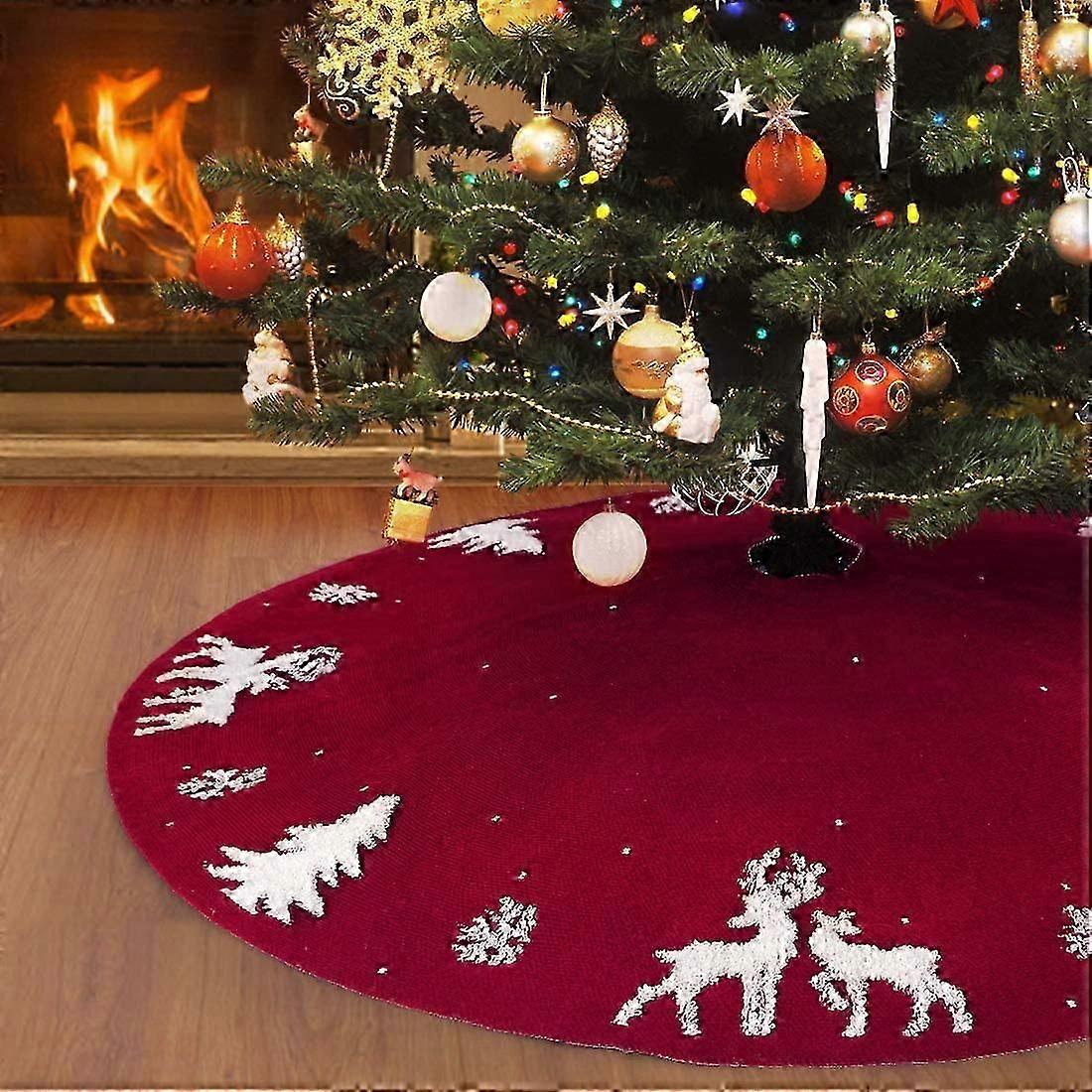 36inch 92cm Knit Christmas Tree Skirt, Rustic Red Elk 3D Christmas Tree Mat for Indoor or Outdoor Christmas Decorations