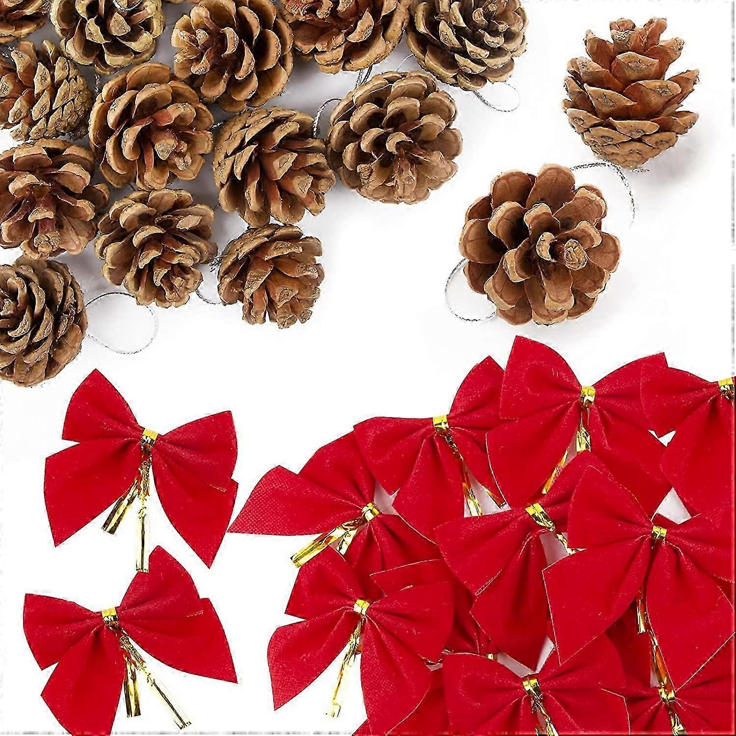 36Pcs Red Christmas Knot 18Pcs Pinecone Cones Pendant Natural Baubles Xmas Hanging Decoration Garland for Christmas Tree