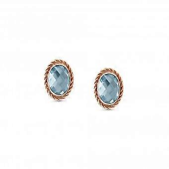 375 Gold Zirconia Oval Rich Light Blue Earrings 027821/006