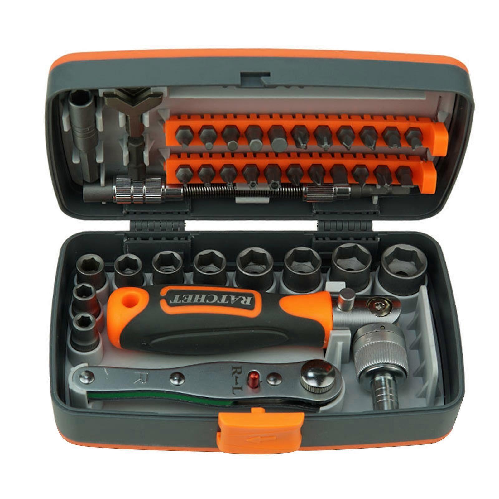 38 in 1 Tool Set Ratchet Screwdriver Set 10 Sleeves 22 Bits Multifunctional Hardware Woodworking Tools for Vehicle Maintenance