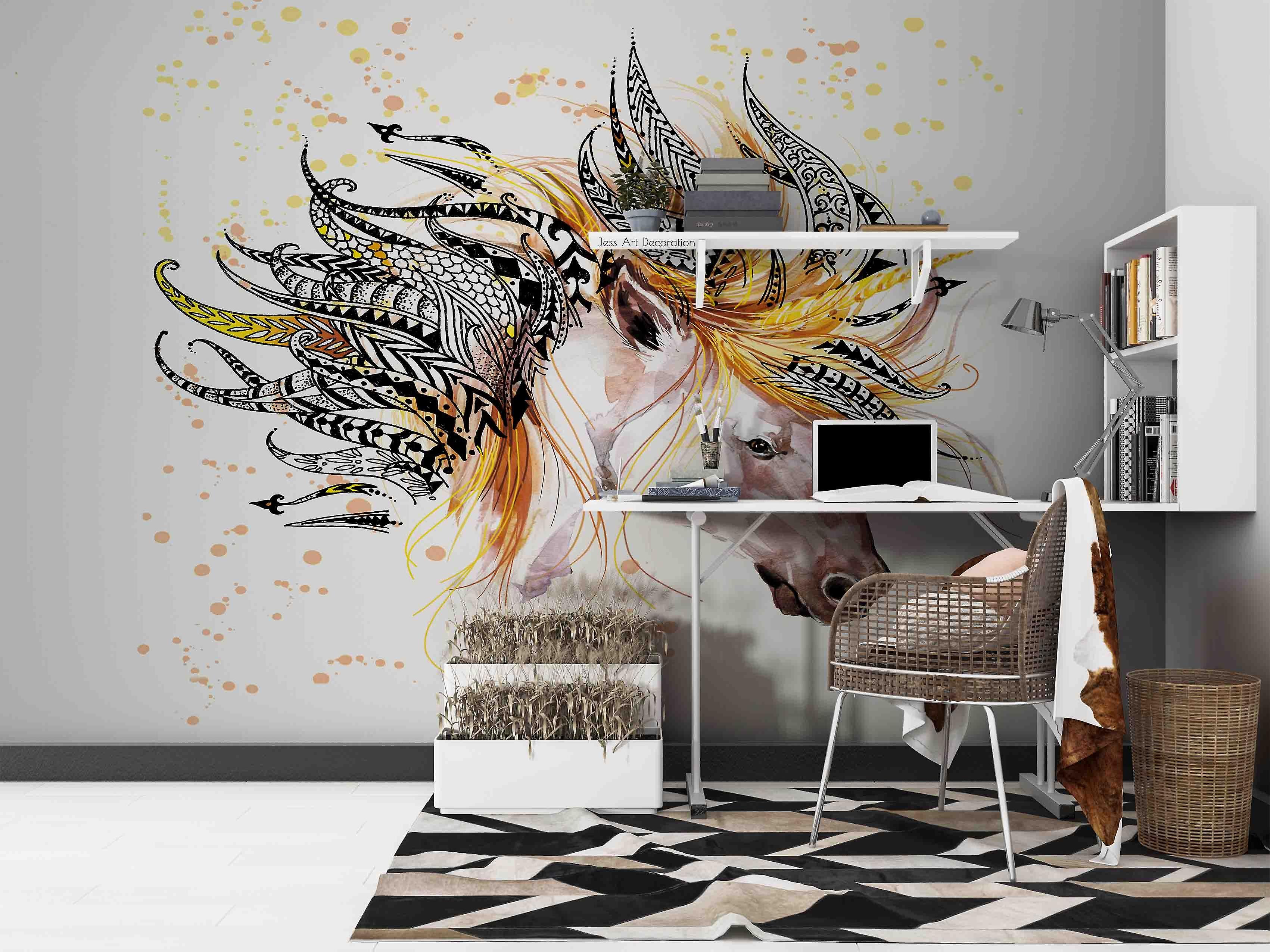 3D Abstract Horse Feather Headdress Watercolor Wall Mural Wallpaper Gd 2874