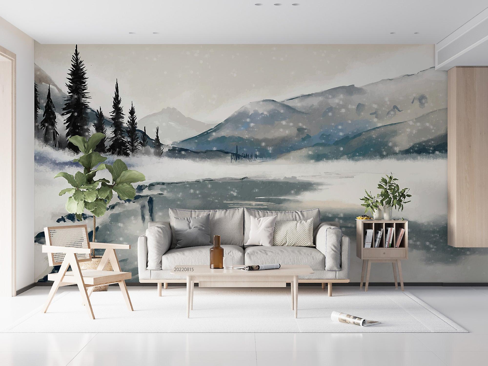 3D Abstract Winter Snow Mountain Pine Landscape Wall Mural Wallpaper Gd 2469