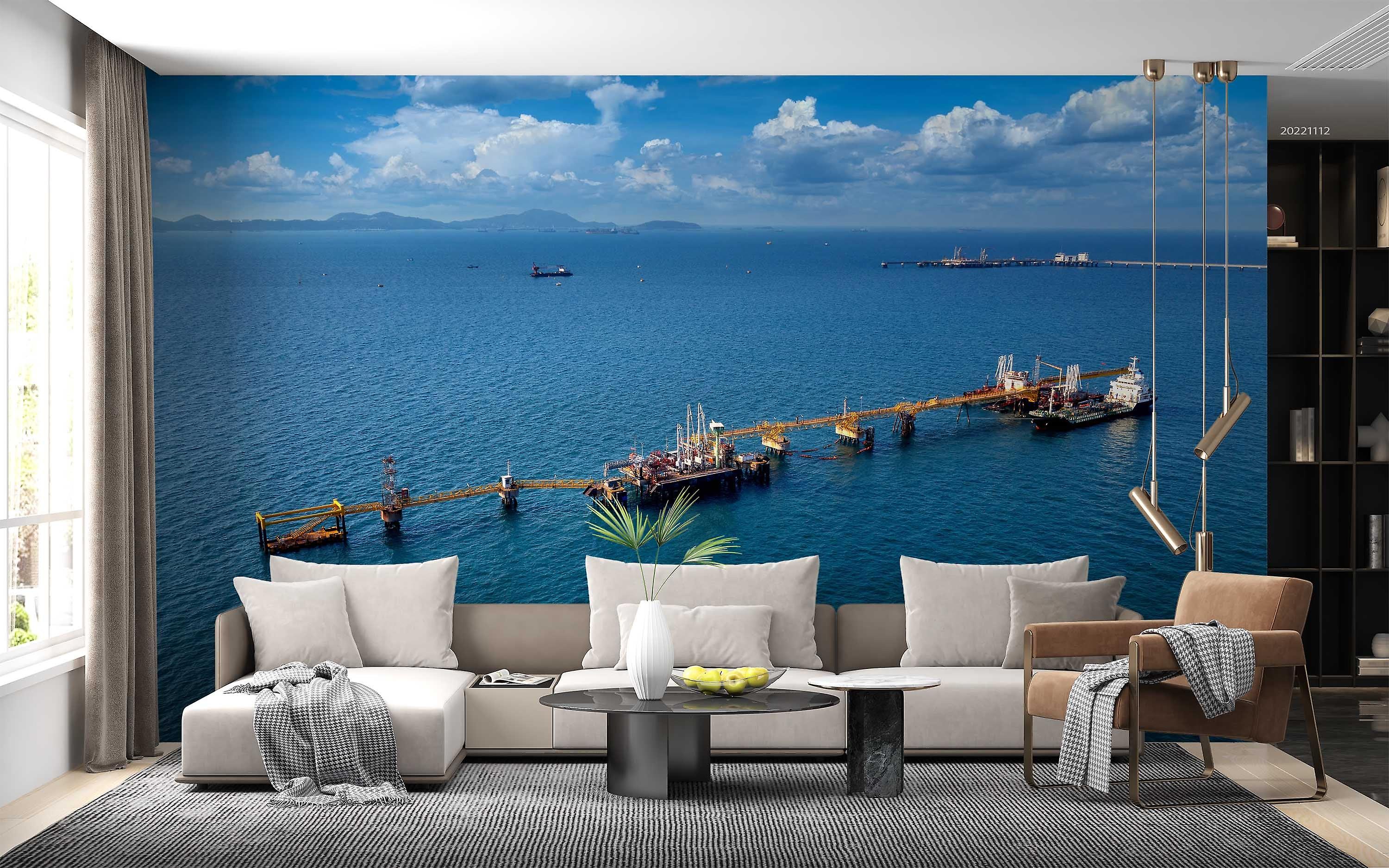 3D Aerial View Offshore Oil Gas Rig Drilling Well Wall Mural Wallpaper Gd 2428