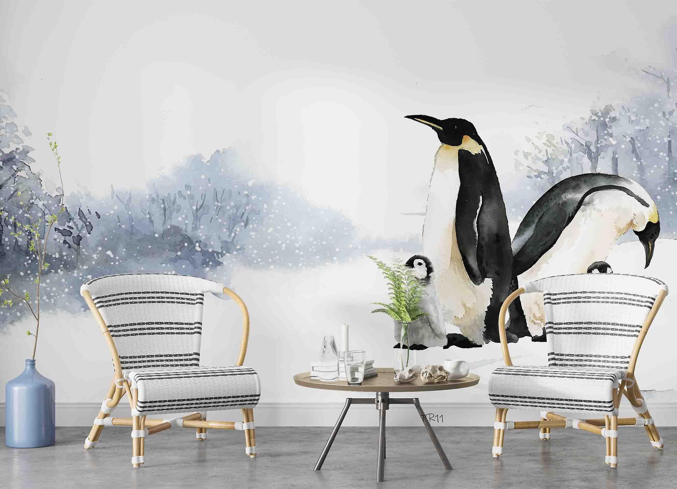 3D Antarctic Emperor Penguin Family Wall Mural Wallpaper Gd 4917