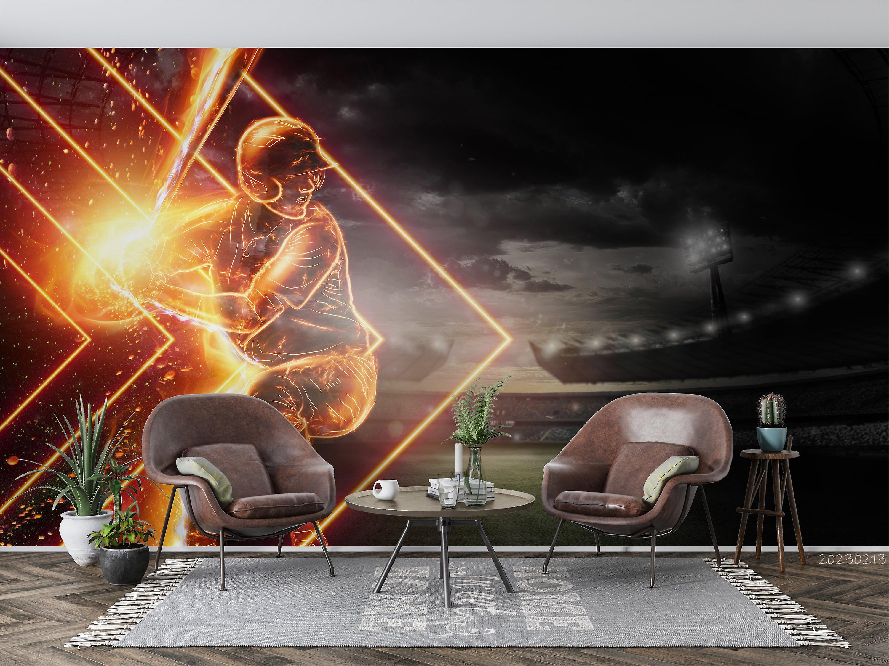 3D Baseball Player Fire Wall Mural Wallpaper Gd 1479