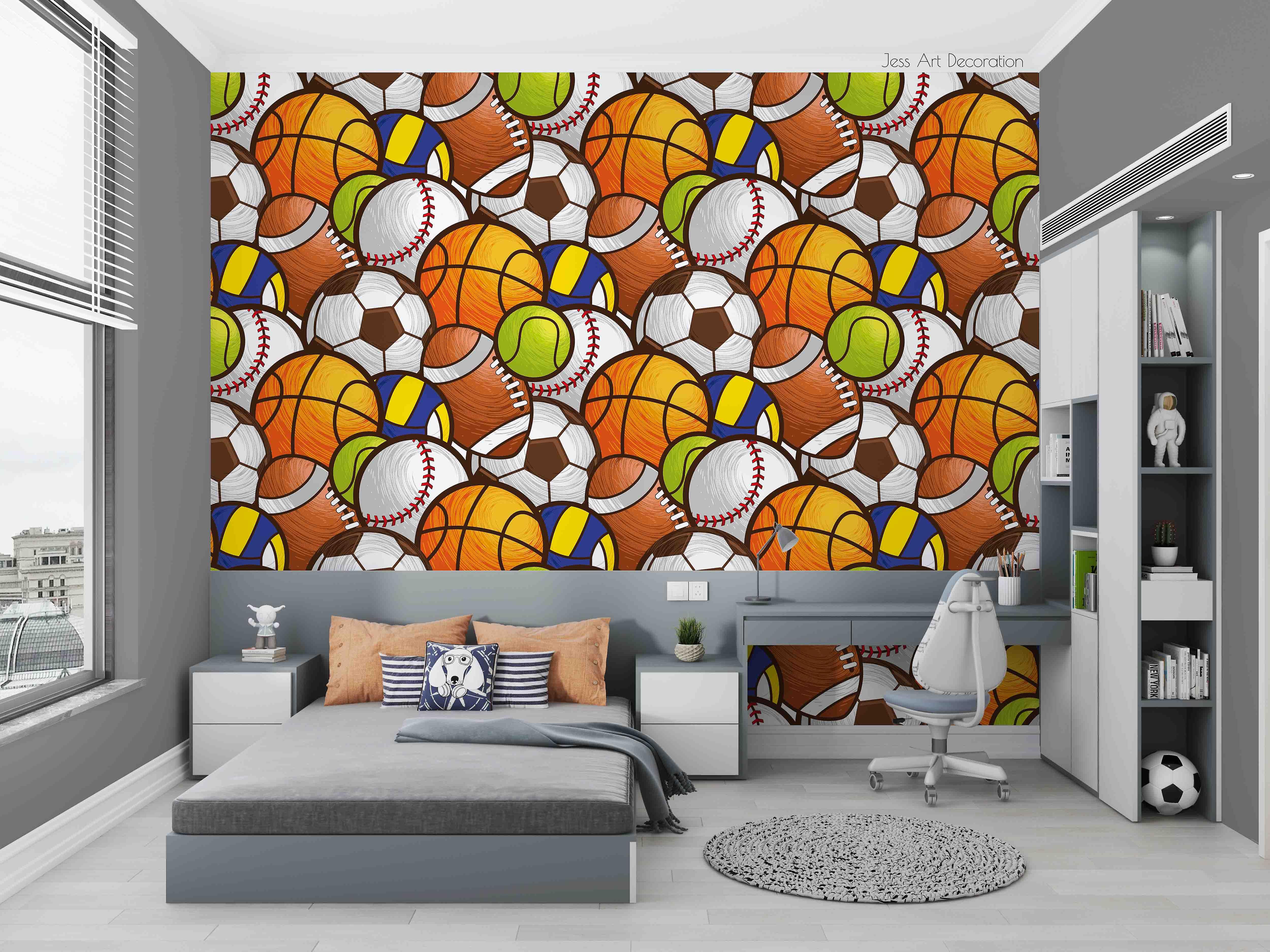 3D Basketball Soccer Volleyball Rugby Baseball Tennis Wall Mural Wallpaper Gd
