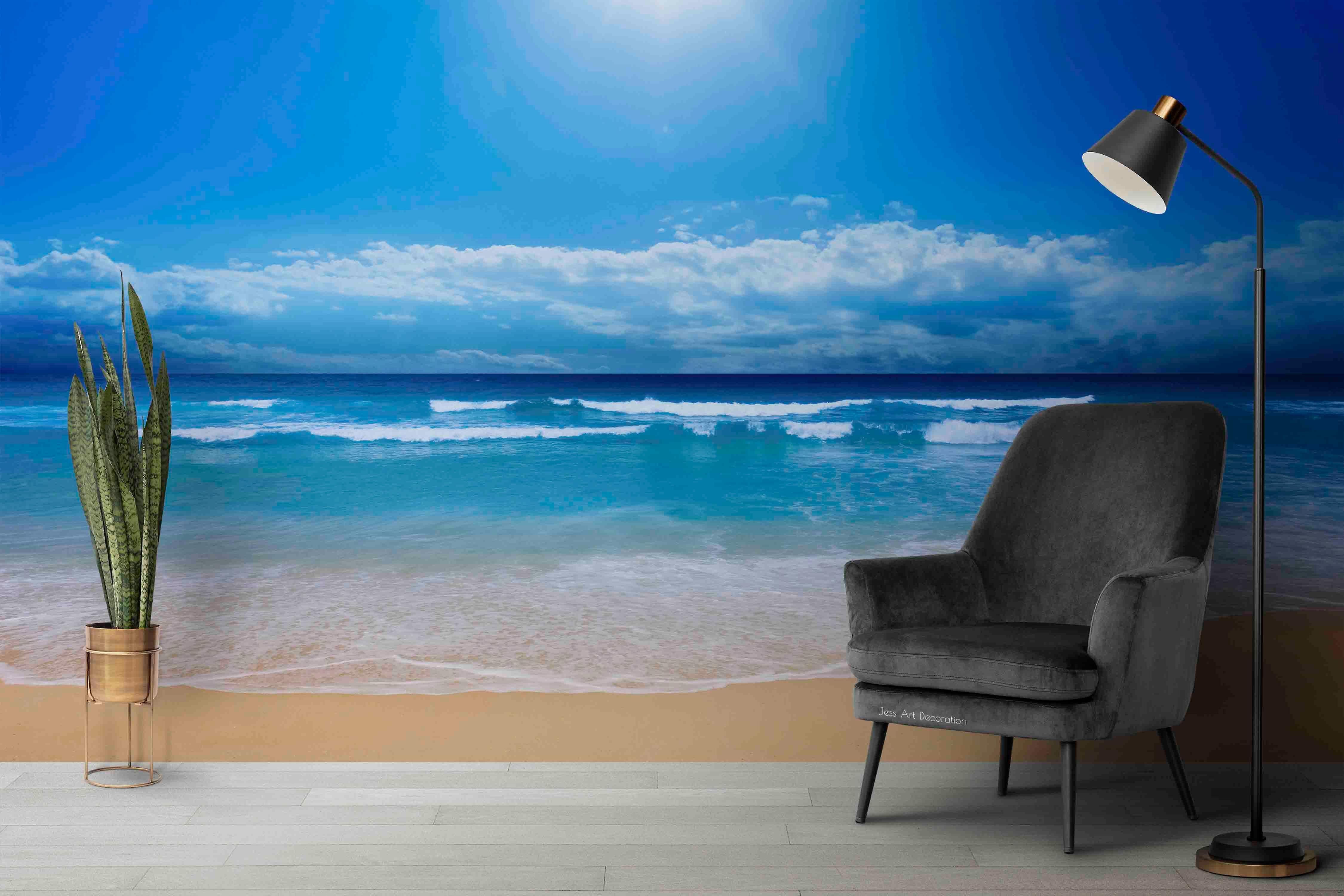 3D Beach Blue Ocean Sky Clouds Wall Mural Wallpaper Gd 2912