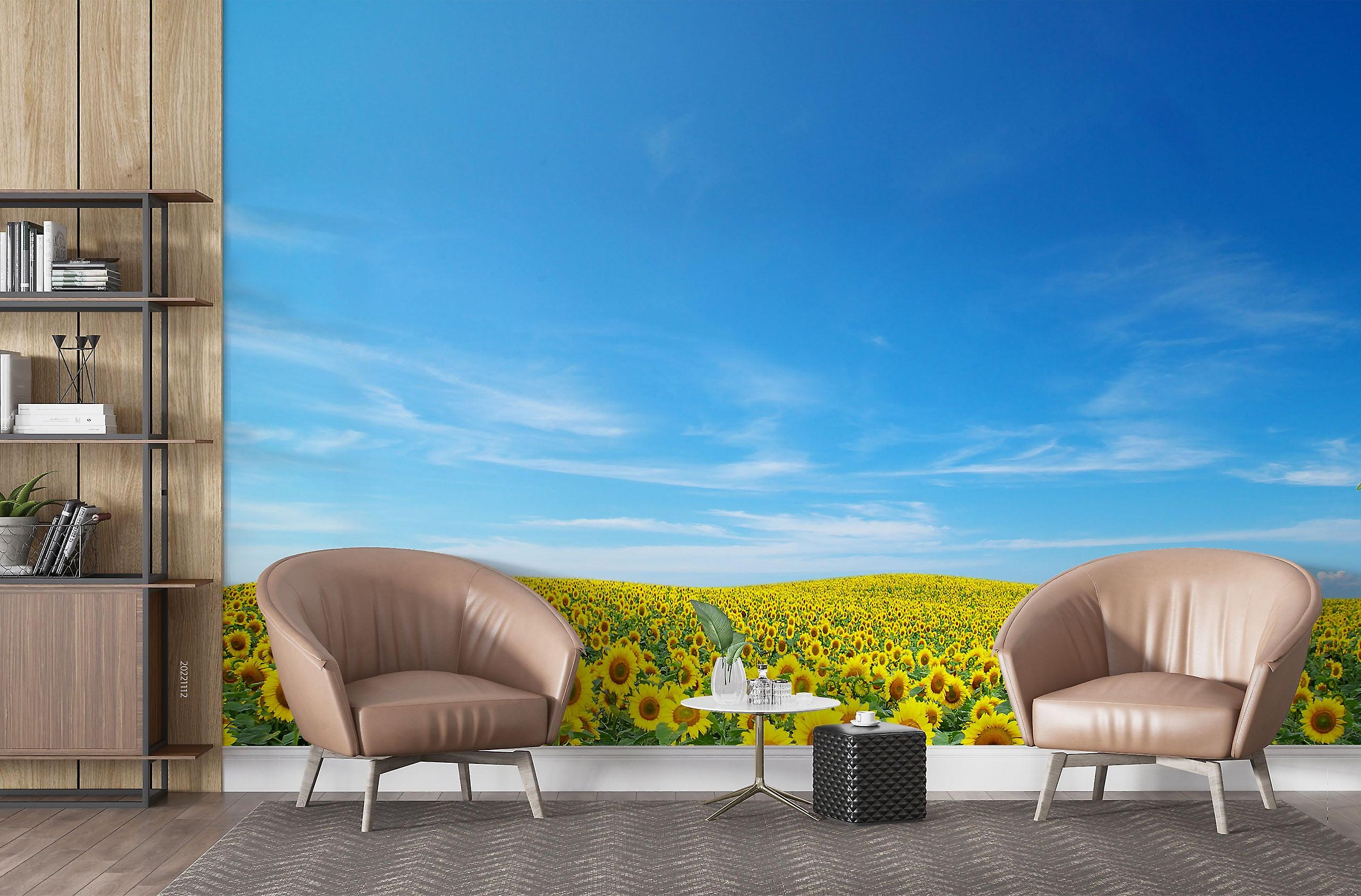3D Beautiful Blooming Sunflower Blue Sky Wall Mural Wallpaper Gd 2369