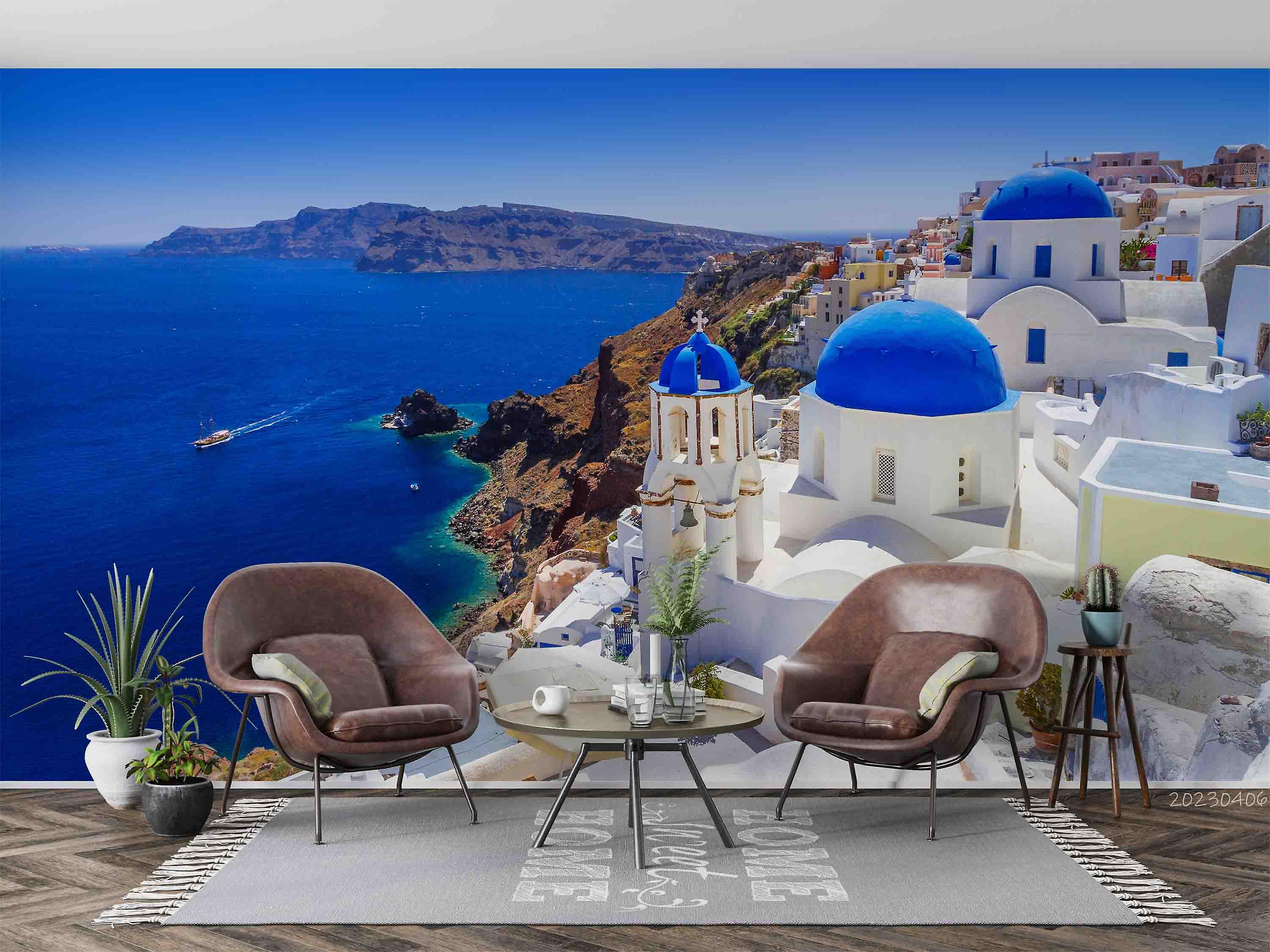 3D Beautiful Oia Town Santorini Island Greece Wall Mural Wallpaper Gd 5647