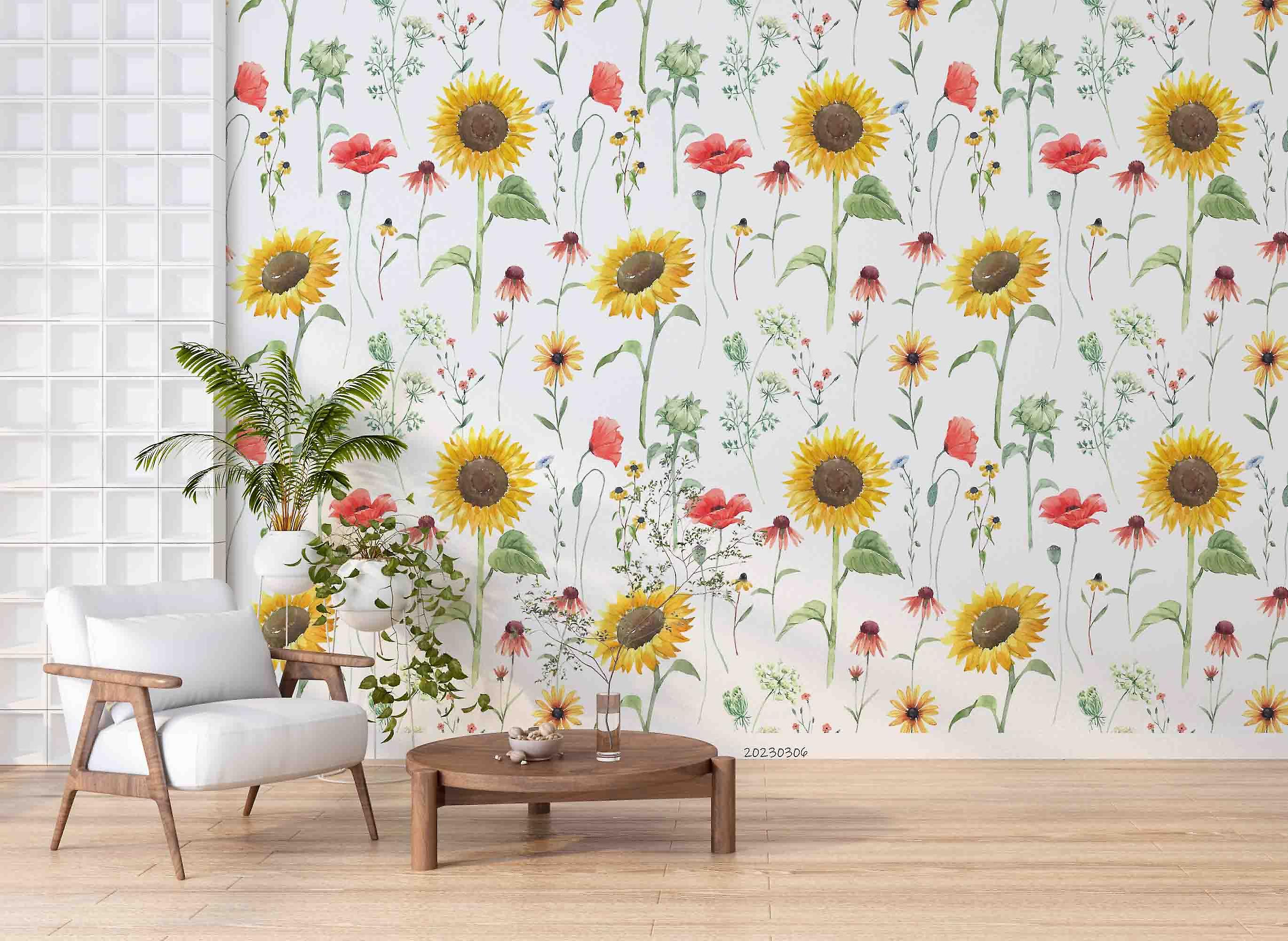 3D Beautiful Watercolor Sunflower Floral Wall Mural Wallpaper Gd 1657