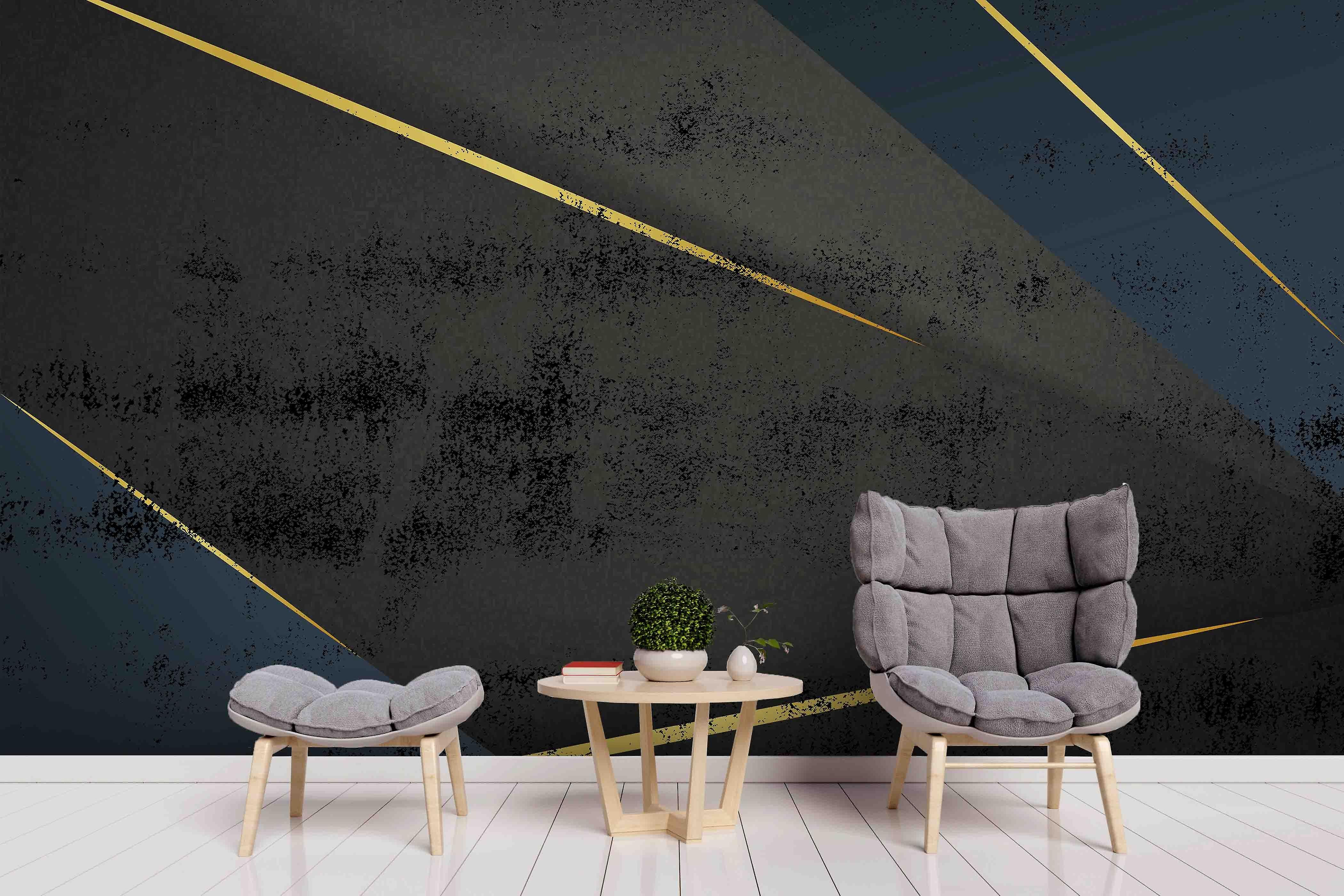 3D Black Geometry Figure Golden Line Wall Mural Wallpaper