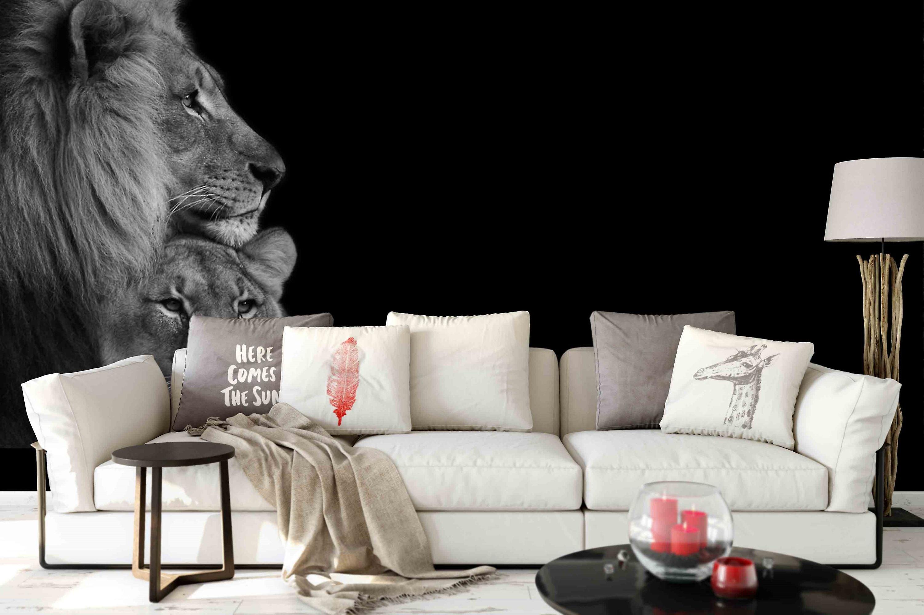 3D Black White Female Male Lion Retro Wall Mural Wallpaper Gd 1863