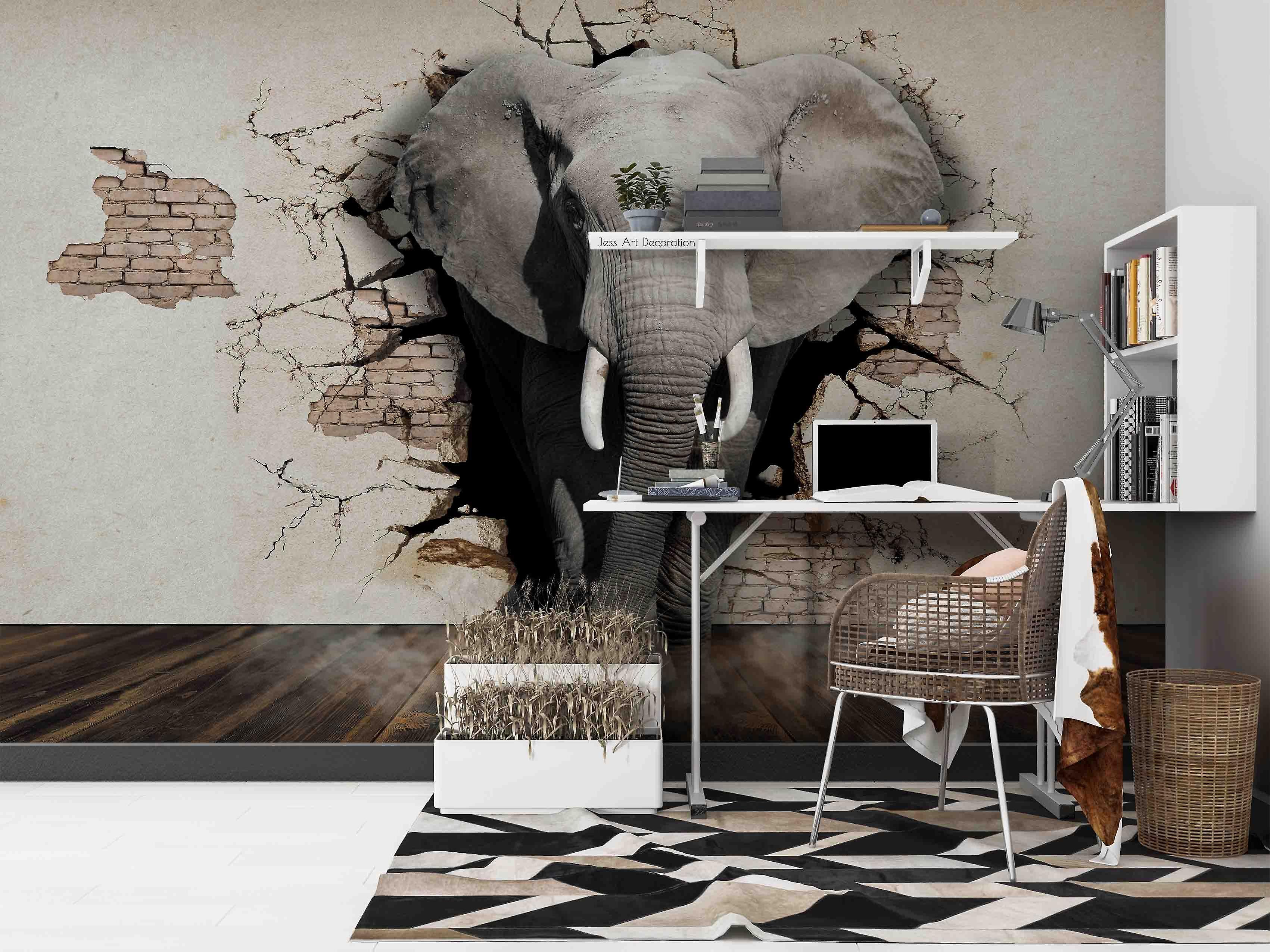 3D Brick Elephant Wall Mural Wallpaper Sww 218
