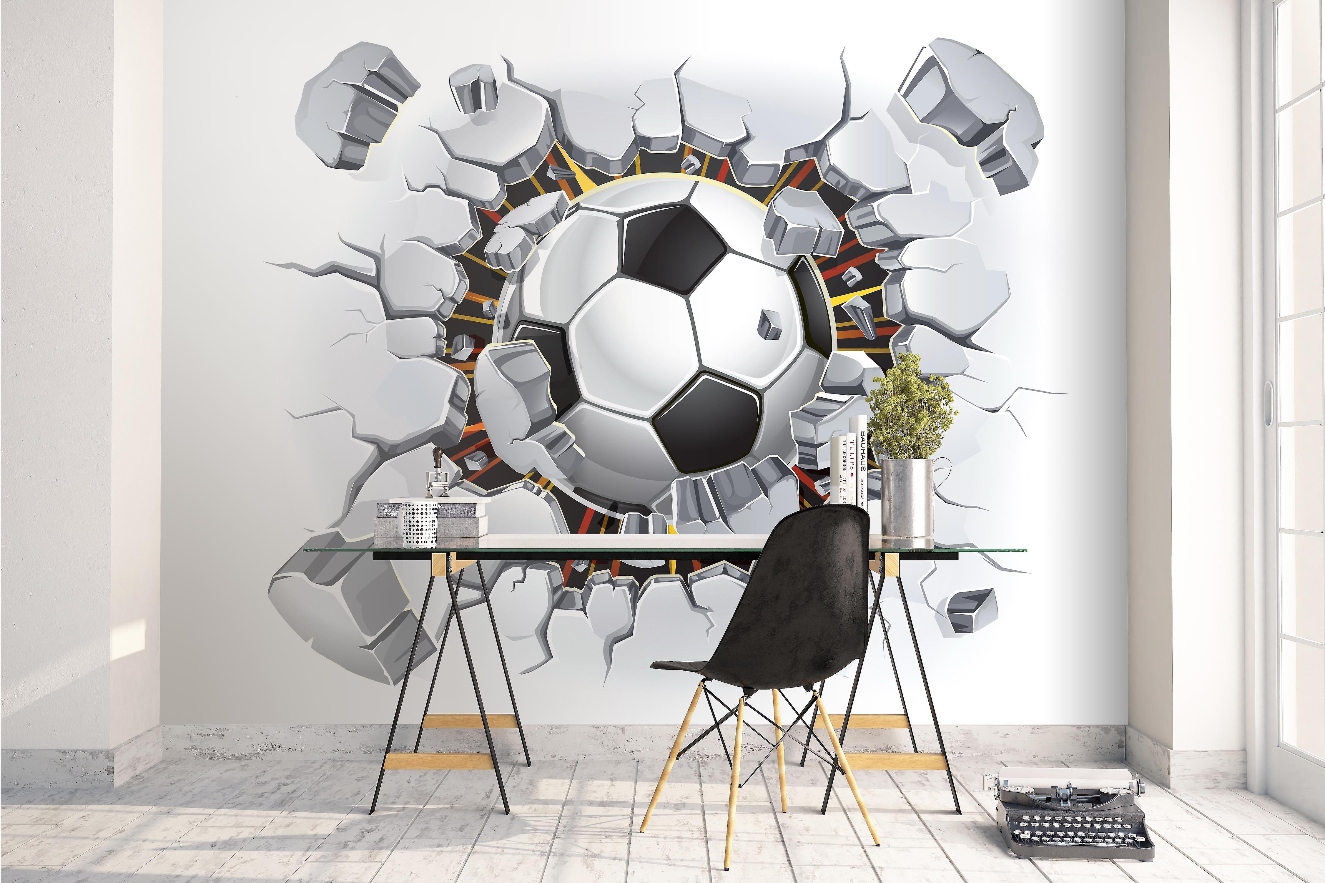 3D Broken Wall Football Sport Wall Mural Wallpaper Lqh 96