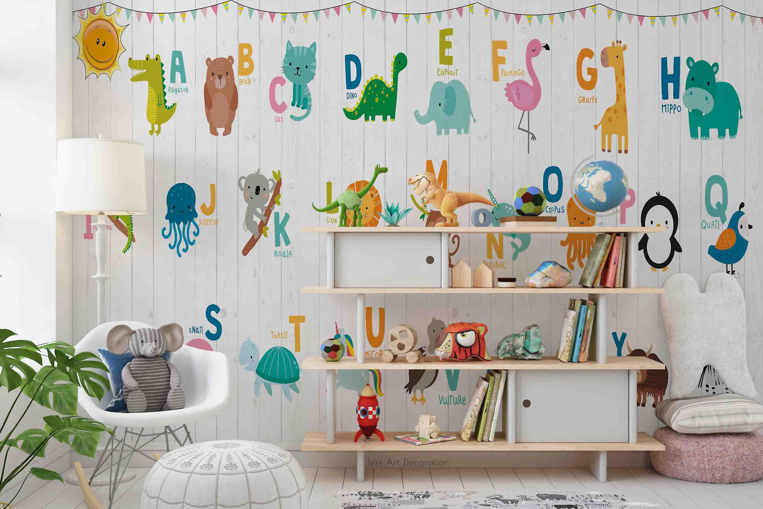 3D Cartoon Animal Alphabet Wall Mural Wallpaper Sww3